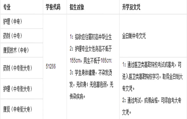學校開設專業(yè):護理、藥劑、康復技術