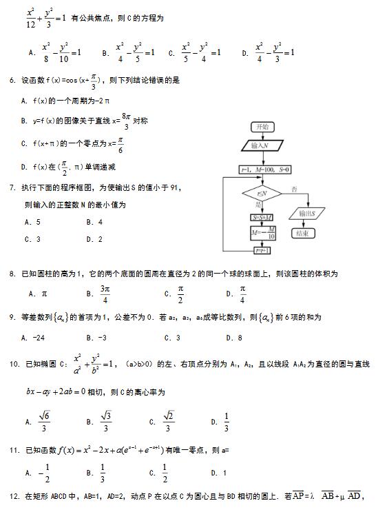 全國普通高考——數學卷內附答案