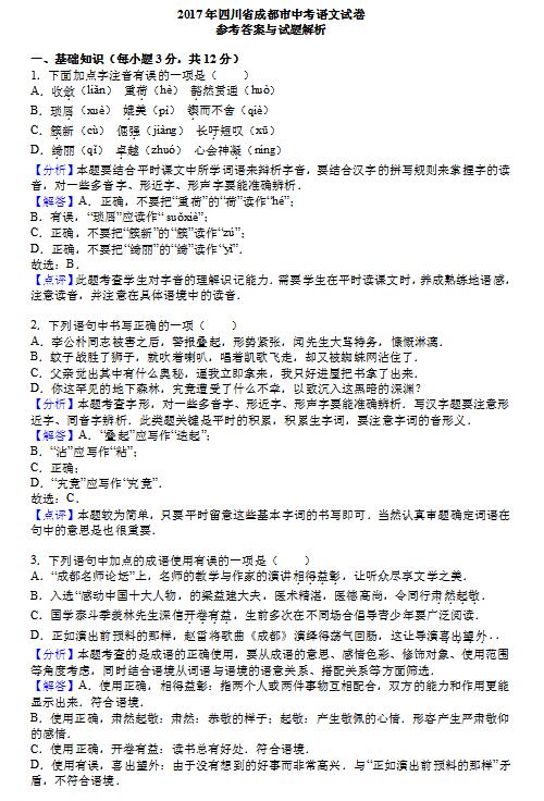 初升高考試——成都中考語文卷一